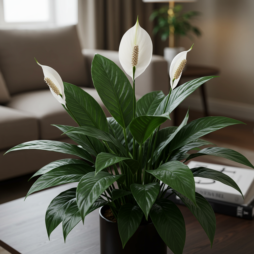 For a touch of grace and elegance, look no further than the Peace Lily (Spathiphyllum). Known for its glossy, dark green leaves and beautiful white spathes (the flower-like part), it brings a sense of calm and sophistication to a room.