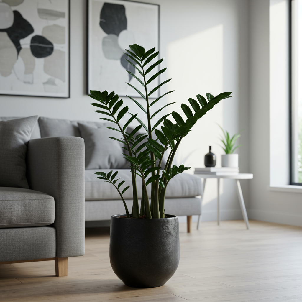 The ZZ plant is extremely drought-tolerant thanks to its large, potato-like rhizomes that store water. It’s happy in low light conditions, making it ideal for that darker corner of your living room where nothing else seems to survive.