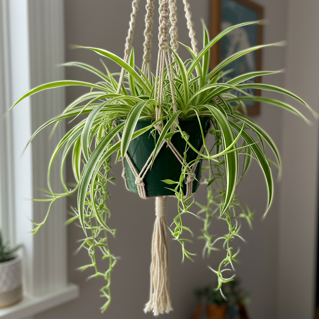 Hang them in a macrame hanger for a bohemian feel or place them on a plant stand where their babies can dangle freely. They are super adaptable but prefer bright, indirect light and are another excellent air purifier.