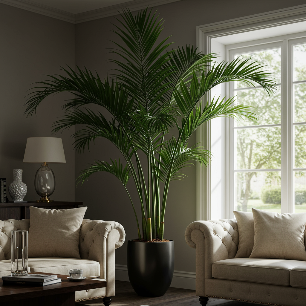It’s more tolerant of lower light and drier air than the Areca Palm, making it a more forgiving choice for many homes. It’s a slow grower, but its stately presence adds a timeless sense of luxury to a living room.